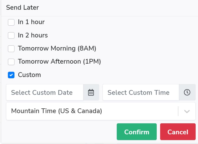 Scheduled messages will use your User Settings timezone by default unless you choose a custom timezone. For proper synchronization, ensure both timezone settings are configured correctly.