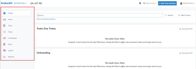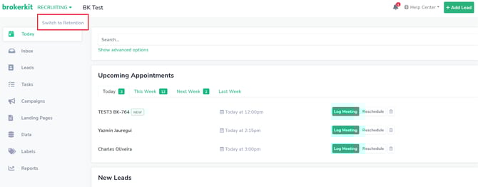 Just like the recruiting side of Brokerkit, Retention is broken down into a few sections: