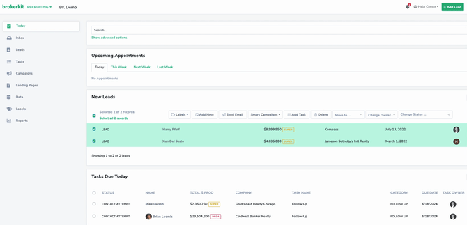 - Today page -> New leads section