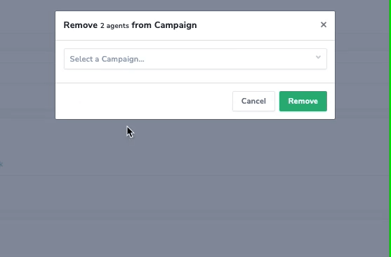 Choose the option to Remove from Campaign. Enter the name of the campaign you wish to delete in the provided field. Finally, click Remove to finalize the action.